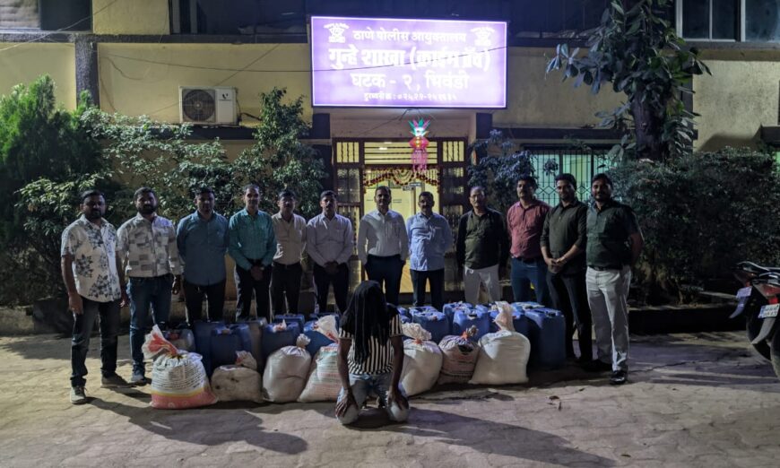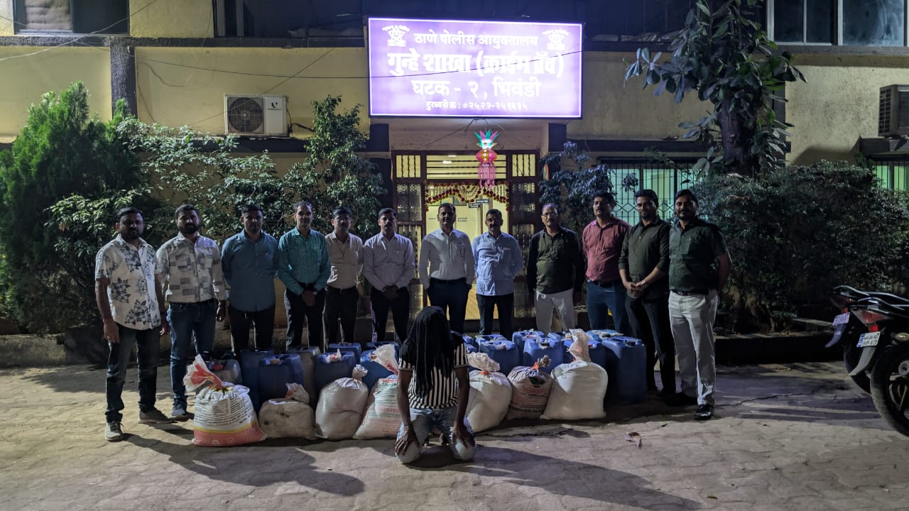 भिवंडी: भिवंडी गुन्हे शाखा युनिट-२ ने बेकायदेशीर दारू उत्पादन आणि विक्री करणाऱ्या विरुद्धच्या मोठ्या कारवाईत १,११५ लिटर हाताने बनवलेला दारूसाठा जप्त केला, या उत्पादित दारूची किंमत सुमारे १,११,५०० रुपये आहे. ही कारवाई गुरुवारी ४ डिसेंबर २०२५ रोजी एका गुप्त माहितीच्या आधारे करण्यात आली.