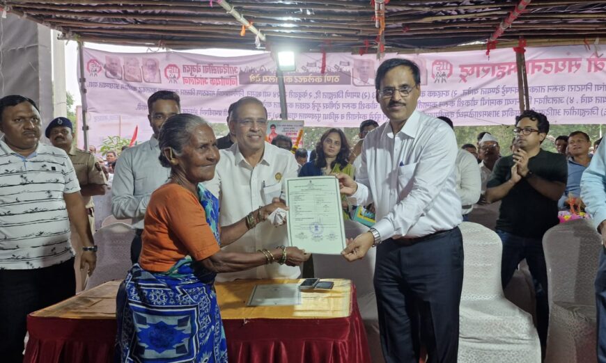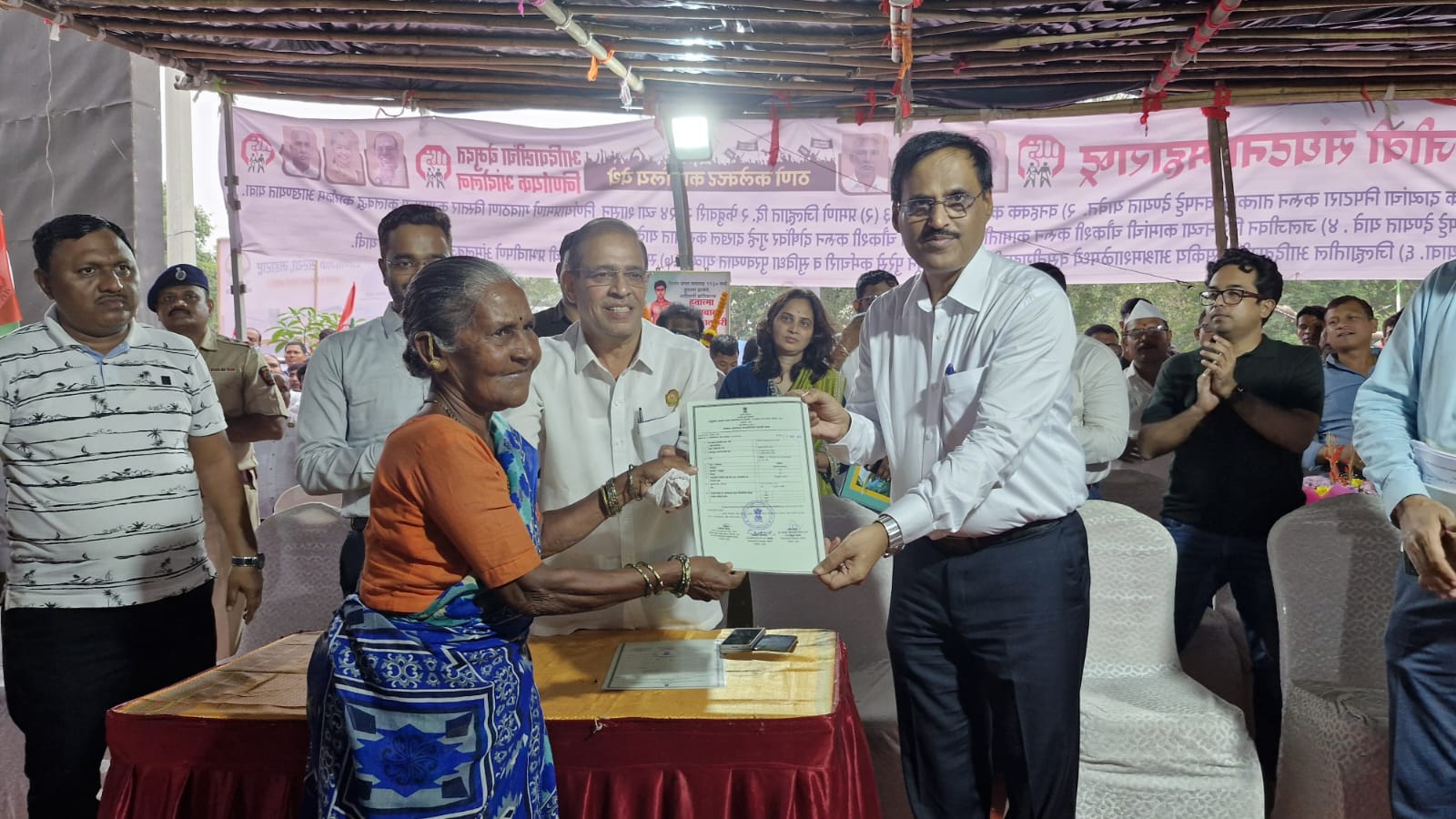 ठाणे: ठाणे जिल्हाधिकारी कार्यालयासमोर गेले 13 दिवस सुरू असलेले श्रमजीवी संघटनेचे आंदोलन आज स्थगित करण्यात आले. ठाणे तालुक्यातील तब्बल 905 आदिवासी बांधवांना जिल्हाधिकारी अशोक शिनगारे यांच्या हस्ते वन हक्क दावे प्रमाणपत्र प्रदान करण्यात आले.