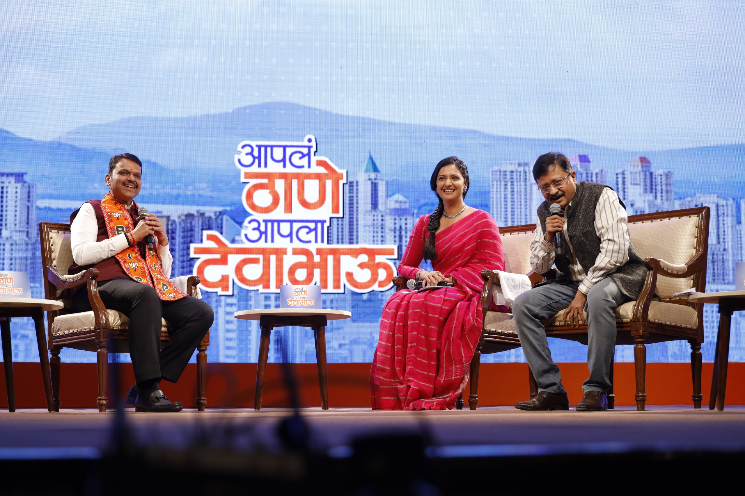 श्री.बल्लाळ यांनी ठाणेकरांच्या मनातील प्रश्न विचारत श्री. फडणविस यांना बोलते केले. श्री. फडणविस यांनी ठाणे तसेच एमएमआर क्षेत्रातील वाहतुकीचा प्रश्न सोडविण्यासाठी पहिल्या पाच वर्षातील मेट्रो संकल्पपूर्तीचा तर २०३० पर्यंत सर्व मेट्रो ठाण्याशी कनेक्ट करण्याचा मनोदय व्यक्त केला. कोस्टल रोडचीही कनेक्टीव्हीटी रिंग करून सर्व वाहतुक भविष्यात शहराबाहेर नेऊन कोंडी कमी करणार असल्याचे स्पष्ट करताना शेवटच्या व्यक्तीपर्यत कनेक्टीव्हीटीचे नियोजन केले असल्याचे सांगितले. घनकचऱ्याच्या आणि डंपिंगच्या समस्येवर त्यांनी भविष्यातील उपाय सांगताना, देशाचे पंतप्रधान नरेंद्र मोदी यांच्या व्हीजननुसार पुढच्या तीन चार वर्षात सर्व डंपिंग बंद करून बायो मायनिंग प्रकल्प सुरू करणार असल्याचे सांगितले. एमएमआर क्षेत्राचा ग्रोथ हब असा विकास, घोडबंदर रोडची समस्या सुटण्यासाठी २०० नॉटीकल्स माईल्सचा विचार करून कोलशेत-दिवा येथे पाच जेटी उभारणार, तसेच वॉटर टॅक्सी सुरू करणार असल्याचे सांगुन ठाण्यात इन्क्युबेशन सेंटरबाबतचे नियोजनही फडणविस यांनी सविस्तरपणे मांडले.