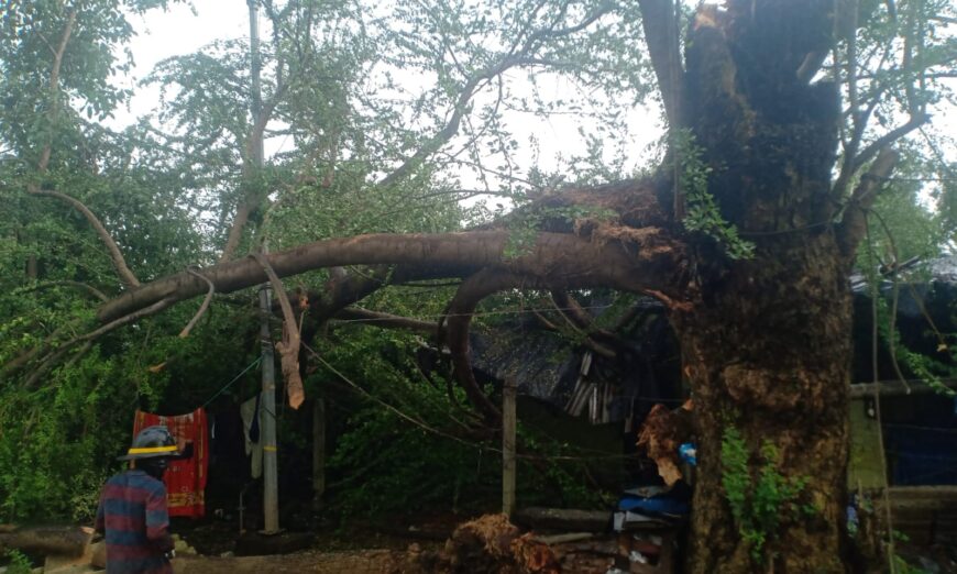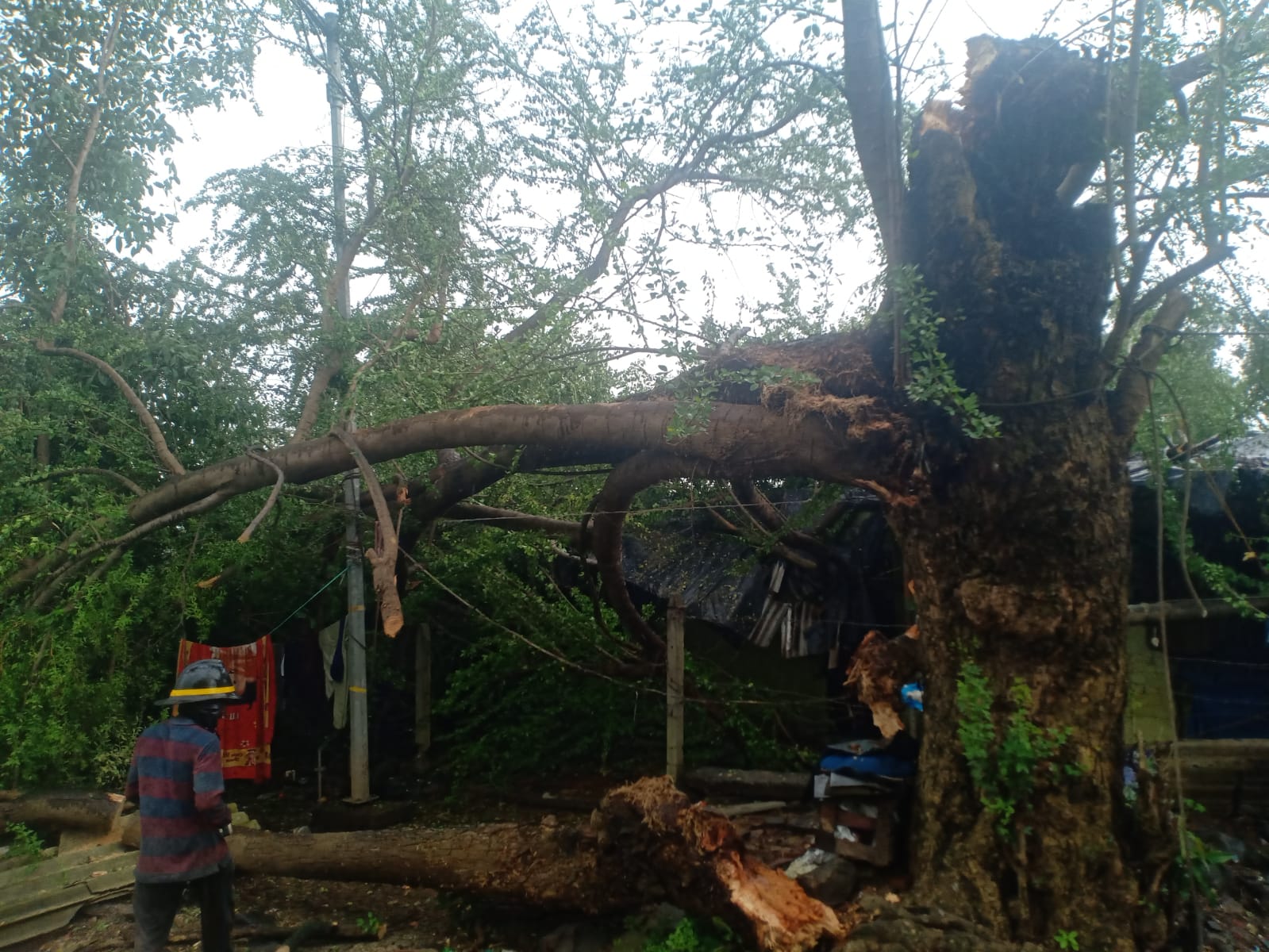 कळव्यातील गोपाळराव नगर या ठिकाणी फास्ट आणि स्लो रेल्वे लाईनच्या बाजूला हिरा पाटील चाळीमधील पाच घरांवर हे झाड पडले. त्यानंतर घटनास्थळी वृक्ष प्राधिकरण विभागाचे अधिकारी व कर्मचारी, आपत्ती व्यवस्थापन कक्षाचे कर्मचारी १-पिकअप वाहनासह, अग्निशमन दलाचे जवान १ – रेस्क्यू वाहनासह पोचले. सुदैवाने यामध्ये जीवितहानी झाली नसून दोन व्यक्तींना किरकोळ दुखापत झाली आहे. दोघांना उपचाराकरिता छत्रपती शिवाजी महाराज रुग्णालयात दाखल करण्यात आले आहे.