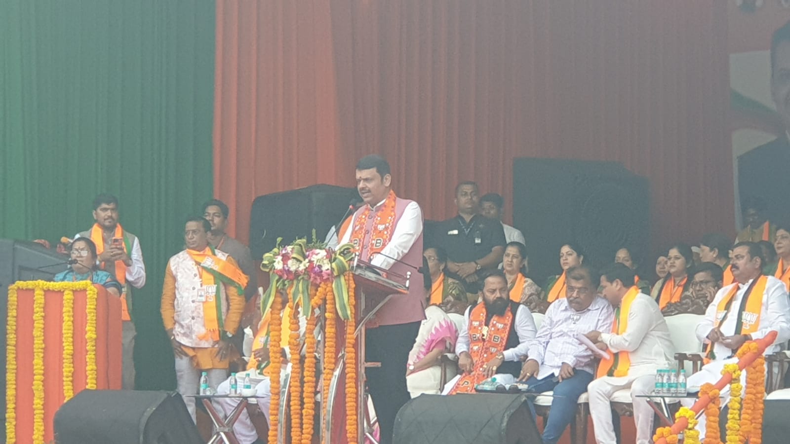 भाजप-शिवसेना महायुतीच्या उमेदवारांच्या प्रचारासाठी येथील छत्रपती शिवाजी महाराज चौकात आज बुधवारी सायंकाळी ४ वाजता प्रचार सभा आयोजित केली होती. या प्रसंगी मंचावर मुख्यमंत्री देवेंद्र फडणविस, भाजप प्रदेशाध्यक्ष रवींद्र चव्हाण, माजी केंद्रीय मंत्री कपिल पाटील, आमदार महेश चौघुले व महायुतीचे सर्व उमेदवार व पदाधिकारी व्यासपीठावर उपस्थित होते.